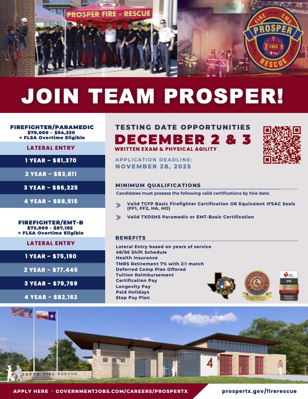 The Town of Prosper, Texas, is an Equal Opportunity Employer. In compliance with the Americans with Disabilities Act, the Town will provide reasonable accommodations to qualified individuals with disabilities and encourages both prospective and current employees to discuss potential accommodations with Human Resources and/or the Town Manager.